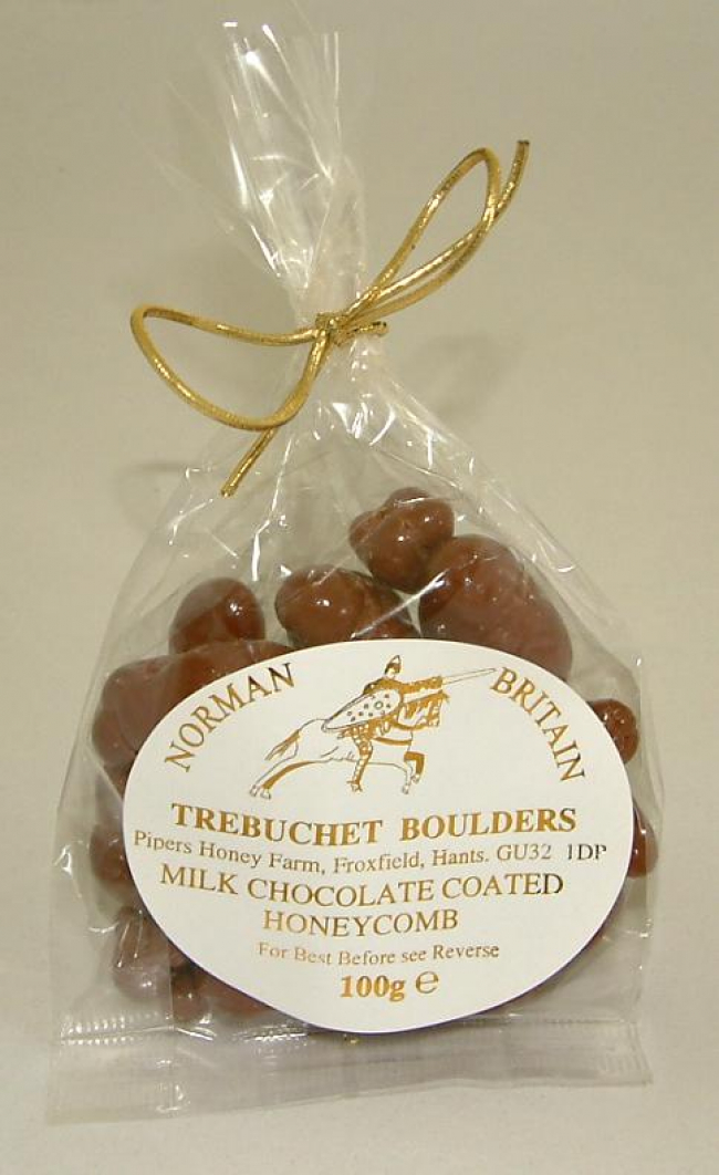 Random sized pieces of Cinder Toffee covered in thick Milk Chocolate. Bag size 90 x 140 x 50mm.