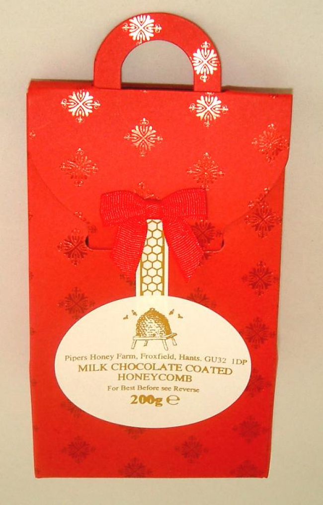 Traditional Cinder Toffee covered in thick Milk Chocolate. Overall Box size 185 x 95 x 55mm