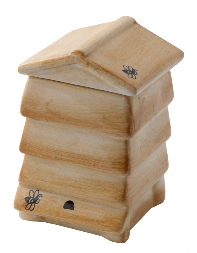 Ceramicware honeypot containing 114g Hampshire Set Honey. Size 87 x 55 x 60mm